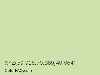 XYZ 59.916,70.389,49.964 Color is a light green color and the nearest color is Green Mist #cbd3b0. Hex code #cde2ad and RGB value is rgb(205,226,173). In RGB color space, this color is composed of 80% red, 89% green, 68% blue, In CMYK color space, this color is composed of 9% cyan, 0% magenta, 23% yellow , 11% black , In HSL color space, this color has a hue angle of 84° , 48% saturation and 78% lightness.