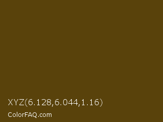 XYZ 6.128,6.044,1.16 Color is a very dark orange color and the nearest color is Pineapple #563c0d. Hex code #59420b and RGB value is rgb(89,66,11). In RGB color space, this color is composed of 35% red, 26% green, 4% blue, In CMYK color space, this color is composed of 0% cyan, 26% magenta, 88% yellow , 65% black , In HSL color space, this color has a hue angle of 42° , 78% saturation and 20% lightness.