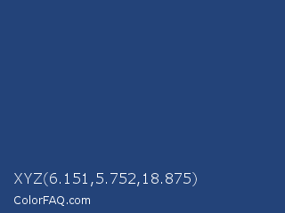 XYZ 6.151,5.752,18.875 Color is a normal blue color and the nearest color is Astronaut #283a77. Hex code #234379 and RGB value is rgb(35,67,121). In RGB color space, this color is composed of 14% red, 26% green, 47% blue, In CMYK color space, this color is composed of 71% cyan, 45% magenta, 0% yellow , 53% black , In HSL color space, this color has a hue angle of 218° , 55% saturation and 31% lightness.