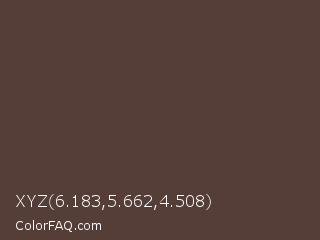 XYZ 6.183,5.662,4.508 Color is a dark red color and the nearest color is Dark Liver Horses #543d37. Hex code #553e38 and RGB value is rgb(85,62,56). In RGB color space, this color is composed of 33% red, 24% green, 22% blue, In CMYK color space, this color is composed of 0% cyan, 27% magenta, 34% yellow , 67% black , In HSL color space, this color has a hue angle of 12° , 21% saturation and 28% lightness.
