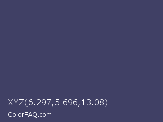 XYZ 6.297,5.696,13.08 Color is a normal blue color and the nearest color is Gun Powder #414257. Hex code #404065 and RGB value is rgb(64,64,101). In RGB color space, this color is composed of 25% red, 25% green, 40% blue, In CMYK color space, this color is composed of 37% cyan, 37% magenta, 0% yellow , 60% black , In HSL color space, this color has a hue angle of 240° , 22% saturation and 32% lightness.