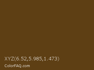 XYZ 6.52,5.985,1.473 Color is a very dark orange color and the nearest color is Pullman Brown UPS Brown #644117. Hex code #5e3f14 and RGB value is rgb(94,63,20). In RGB color space, this color is composed of 37% red, 25% green, 8% blue, In CMYK color space, this color is composed of 0% cyan, 33% magenta, 79% yellow , 63% black , In HSL color space, this color has a hue angle of 35° , 65% saturation and 22% lightness.
