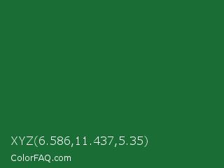 XYZ 6.586,11.437,5.35 Color is a dark green color and the nearest color is Jewel #126b40. Hex code #1b6d36 and RGB value is rgb(27,109,54). In RGB color space, this color is composed of 11% red, 43% green, 21% blue, In CMYK color space, this color is composed of 75% cyan, 0% magenta, 50% yellow , 57% black , In HSL color space, this color has a hue angle of 140° , 60% saturation and 27% lightness.