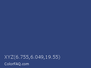 XYZ 6.755,6.049,19.55 Color is a normal blue color and the nearest color is Astronaut #283a77. Hex code #2f437b and RGB value is rgb(47,67,123). In RGB color space, this color is composed of 18% red, 26% green, 48% blue, In CMYK color space, this color is composed of 62% cyan, 46% magenta, 0% yellow , 52% black , In HSL color space, this color has a hue angle of 224° , 45% saturation and 33% lightness.