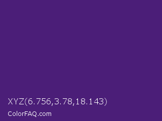 XYZ 6.756,3.78,18.143 Color is a dark violet color and the nearest color is Honey Flower #4f1c70. Hex code #4b1e78 and RGB value is rgb(75,30,120). In RGB color space, this color is composed of 29% red, 12% green, 47% blue, In CMYK color space, this color is composed of 38% cyan, 75% magenta, 0% yellow , 53% black , In HSL color space, this color has a hue angle of 270° , 60% saturation and 29% lightness.