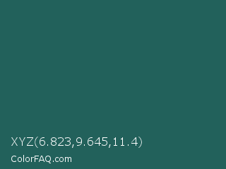 XYZ 6.823,9.645,11.4 Color is a dark cyan color and the nearest color is Spectra #2f5a57. Hex code #22615b and RGB value is rgb(34,97,91). In RGB color space, this color is composed of 13% red, 38% green, 36% blue, In CMYK color space, this color is composed of 65% cyan, 0% magenta, 6% yellow , 62% black , In HSL color space, this color has a hue angle of 174° , 48% saturation and 26% lightness.