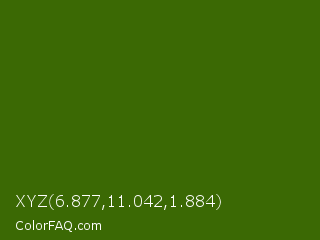 XYZ 6.877,11.042,1.884 Color is a very dark green color and the nearest color is Green Leaf #436a0d. Hex code #3b6904 and RGB value is rgb(59,105,4). In RGB color space, this color is composed of 23% red, 41% green, 2% blue, In CMYK color space, this color is composed of 44% cyan, 0% magenta, 96% yellow , 59% black , In HSL color space, this color has a hue angle of 87° , 93% saturation and 21% lightness.