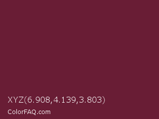 XYZ 6.908,4.139,3.803 Color is a dark rose color and the nearest color is Wine Berry #591d35. Hex code #691d35 and RGB value is rgb(105,29,53). In RGB color space, this color is composed of 41% red, 11% green, 21% blue, In CMYK color space, this color is composed of 0% cyan, 72% magenta, 50% yellow , 59% black , In HSL color space, this color has a hue angle of 341° , 57% saturation and 26% lightness.