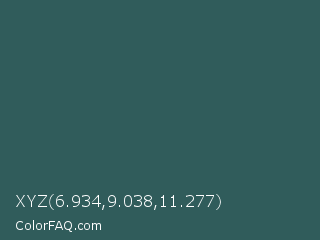 XYZ 6.934,9.038,11.277 Color is a dark cyan color and the nearest color is Spectra #2f5a57. Hex code #305c5b and RGB value is rgb(48,92,91). In RGB color space, this color is composed of 19% red, 36% green, 36% blue, In CMYK color space, this color is composed of 48% cyan, 0% magenta, 1% yellow , 64% black , In HSL color space, this color has a hue angle of 179° , 31% saturation and 27% lightness.