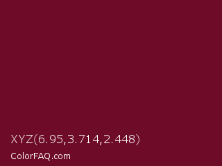 XYZ 6.95,3.714,2.448 Color is a dark rose color and the nearest color is Black Rose #67032d. Hex code #6e0b29 and RGB value is rgb(110,11,41). In RGB color space, this color is composed of 43% red, 4% green, 16% blue, In CMYK color space, this color is composed of 0% cyan, 90% magenta, 63% yellow , 57% black , In HSL color space, this color has a hue angle of 342° , 82% saturation and 24% lightness.
