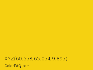 XYZ 60.558,65.054,9.895 Color is a normal yellow color and the nearest color is Jonquil #f4ca16. Hex code #f5d111 and RGB value is rgb(245,209,17). In RGB color space, this color is composed of 96% red, 82% green, 7% blue, In CMYK color space, this color is composed of 0% cyan, 15% magenta, 93% yellow , 4% black , In HSL color space, this color has a hue angle of 51° , 92% saturation and 51% lightness.
