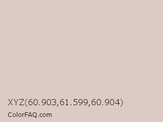 XYZ 60.903,61.599,60.904 Color is a very light red color and the nearest color is Wafer #decbc6. Hex code #ddcac4 and RGB value is rgb(221,202,196). In RGB color space, this color is composed of 87% red, 79% green, 77% blue, In CMYK color space, this color is composed of 0% cyan, 9% magenta, 11% yellow , 13% black , In HSL color space, this color has a hue angle of 14° , 27% saturation and 82% lightness.