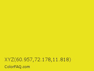 XYZ 60.957,72.178,11.818 Color is a normal yellow color and the nearest color is Piss Yellow #e1e115. Hex code #e8e31c and RGB value is rgb(232,227,28). In RGB color space, this color is composed of 91% red, 89% green, 11% blue, In CMYK color space, this color is composed of 0% cyan, 2% magenta, 88% yellow , 9% black , In HSL color space, this color has a hue angle of 59° , 82% saturation and 51% lightness.
