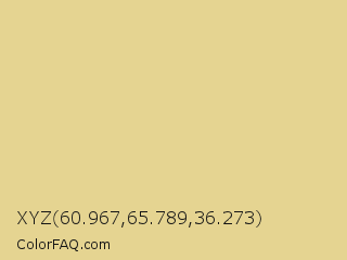 XYZ 60.967,65.789,36.273 Color is a light yellow color and the nearest color is Putty #e7cd8c. Hex code #e5d491 and RGB value is rgb(229,212,145). In RGB color space, this color is composed of 90% red, 83% green, 57% blue, In CMYK color space, this color is composed of 0% cyan, 7% magenta, 37% yellow , 10% black , In HSL color space, this color has a hue angle of 48° , 62% saturation and 73% lightness.