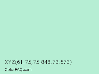 XYZ 61.75,75.848,73.673 Color is a very light green color and the nearest color is Cruise #b5ecdf. Hex code #b6eed4 and RGB value is rgb(182,238,212). In RGB color space, this color is composed of 71% red, 93% green, 83% blue, In CMYK color space, this color is composed of 24% cyan, 0% magenta, 11% yellow , 7% black , In HSL color space, this color has a hue angle of 152° , 62% saturation and 82% lightness.