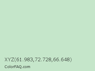 XYZ 61.983,72.728,66.648 Color is a very light green color and the nearest color is Sea Mist #c5dbca. Hex code #c5e6ca and RGB value is rgb(197,230,202). In RGB color space, this color is composed of 77% red, 90% green, 79% blue, In CMYK color space, this color is composed of 14% cyan, 0% magenta, 12% yellow , 10% black , In HSL color space, this color has a hue angle of 129° , 40% saturation and 84% lightness.