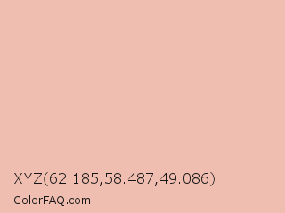 XYZ 62.185,58.487,49.086 Color is a very light red color and the nearest color is Mandys Pink #f2c3b2. Hex code #f0beb0 and RGB value is rgb(240,190,176). In RGB color space, this color is composed of 94% red, 75% green, 69% blue, In CMYK color space, this color is composed of 0% cyan, 21% magenta, 27% yellow , 6% black , In HSL color space, this color has a hue angle of 13° , 68% saturation and 82% lightness.