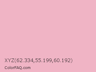 XYZ 62.334,55.199,60.192 Color is a very light rose color and the nearest color is Nadeshiko Pink #f6adc6. Hex code #f0b4c5 and RGB value is rgb(240,180,197). In RGB color space, this color is composed of 94% red, 71% green, 77% blue, In CMYK color space, this color is composed of 0% cyan, 25% magenta, 18% yellow , 6% black , In HSL color space, this color has a hue angle of 343° , 67% saturation and 82% lightness.