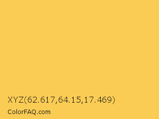 XYZ 62.617,64.15,17.469 Color is a light orange color and the nearest color is Golden Tainoi #ffcc5c. Hex code #facc54 and RGB value is rgb(250,204,84). In RGB color space, this color is composed of 98% red, 80% green, 33% blue, In CMYK color space, this color is composed of 0% cyan, 18% magenta, 66% yellow , 2% black , In HSL color space, this color has a hue angle of 43° , 94% saturation and 65% lightness.