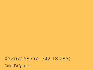 XYZ 62.685,61.742,18.286 Color is a light orange color and the nearest color is Golden Tainoi #ffcc5c. Hex code #fec55a and RGB value is rgb(254,197,90). In RGB color space, this color is composed of 100% red, 77% green, 35% blue, In CMYK color space, this color is composed of 0% cyan, 22% magenta, 65% yellow , 0% black , In HSL color space, this color has a hue angle of 39° , 99% saturation and 67% lightness.