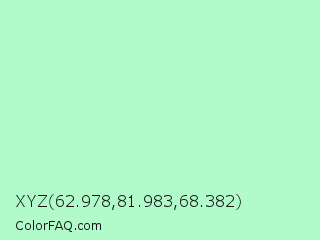 XYZ 62.978,81.983,68.382 Color is a very light green color and the nearest color is Magic Mint #aaf0d1. Hex code #b1faca and RGB value is rgb(177,250,202). In RGB color space, this color is composed of 69% red, 98% green, 79% blue, In CMYK color space, this color is composed of 29% cyan, 0% magenta, 19% yellow , 2% black , In HSL color space, this color has a hue angle of 141° , 88% saturation and 84% lightness.