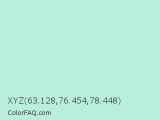 XYZ 63.128,76.454,78.448 Color is a very light green color and the nearest color is Cruise #b5ecdf. Hex code #b8eedb and RGB value is rgb(184,238,219). In RGB color space, this color is composed of 72% red, 93% green, 86% blue, In CMYK color space, this color is composed of 23% cyan, 0% magenta, 8% yellow , 7% black , In HSL color space, this color has a hue angle of 159° , 61% saturation and 83% lightness.