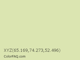XYZ 65.169,74.273,52.496 Color is a light lime color and the nearest color is Caper #dcedb4. Hex code #dbe5b1 and RGB value is rgb(219,229,177). In RGB color space, this color is composed of 86% red, 90% green, 69% blue, In CMYK color space, this color is composed of 4% cyan, 0% magenta, 23% yellow , 10% black , In HSL color space, this color has a hue angle of 72° , 50% saturation and 80% lightness.
