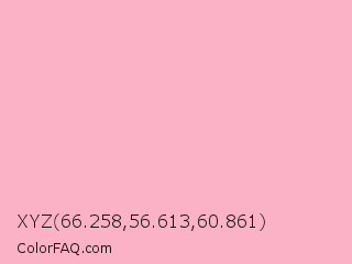 XYZ 66.258,56.613,60.861 Color is a very light rose color and the nearest color is Cherry Blossom Pink #ffb7c5. Hex code #fcb2c6 and RGB value is rgb(252,178,198). In RGB color space, this color is composed of 99% red, 70% green, 78% blue, In CMYK color space, this color is composed of 0% cyan, 29% magenta, 21% yellow , 1% black , In HSL color space, this color has a hue angle of 344° , 93% saturation and 84% lightness.