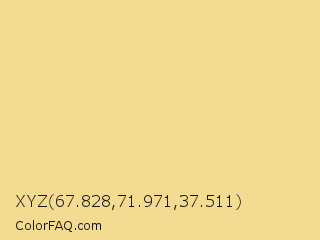 XYZ 67.828,71.971,37.511 Color is a light orange color and the nearest color is Chalky #eed794. Hex code #f4db92 and RGB value is rgb(244,219,146). In RGB color space, this color is composed of 96% red, 86% green, 57% blue, In CMYK color space, this color is composed of 0% cyan, 10% magenta, 40% yellow , 4% black , In HSL color space, this color has a hue angle of 45° , 82% saturation and 76% lightness.
