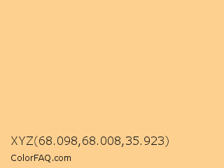 XYZ 68.098,68.008,35.923 Color is a light orange color and the nearest color is Chardonnay #ffcd8c. Hex code #fdd090 and RGB value is rgb(253,208,144). In RGB color space, this color is composed of 99% red, 82% green, 56% blue, In CMYK color space, this color is composed of 0% cyan, 18% magenta, 43% yellow , 1% black , In HSL color space, this color has a hue angle of 35° , 96% saturation and 78% lightness.