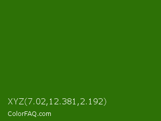 XYZ 7.02,12.381,2.192 Color is a dark green color and the nearest color is Napier Green #2a8000. Hex code #2d7106 and RGB value is rgb(45,113,6). In RGB color space, this color is composed of 18% red, 44% green, 2% blue, In CMYK color space, this color is composed of 60% cyan, 0% magenta, 95% yellow , 56% black , In HSL color space, this color has a hue angle of 98° , 90% saturation and 23% lightness.