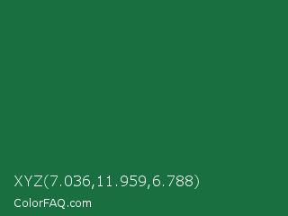 XYZ 7.036,11.959,6.788 Color is a dark green color and the nearest color is Dark Spring Green #177245. Hex code #1a6f40 and RGB value is rgb(26,111,64). In RGB color space, this color is composed of 10% red, 44% green, 25% blue, In CMYK color space, this color is composed of 77% cyan, 0% magenta, 42% yellow , 56% black , In HSL color space, this color has a hue angle of 147° , 62% saturation and 27% lightness.