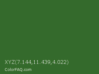 XYZ 7.144,11.439,4.022 Color is a dark green color and the nearest color is Mughal Green #306030. Hex code #356b2a and RGB value is rgb(53,107,42). In RGB color space, this color is composed of 21% red, 42% green, 16% blue, In CMYK color space, this color is composed of 50% cyan, 0% magenta, 61% yellow , 58% black , In HSL color space, this color has a hue angle of 110° , 44% saturation and 29% lightness.