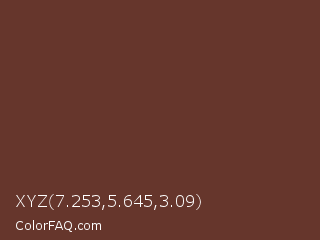 XYZ 7.253,5.645,3.09 Color is a dark red color and the nearest color is Buccaneer #622f30. Hex code #66362c and RGB value is rgb(102,54,44). In RGB color space, this color is composed of 40% red, 21% green, 17% blue, In CMYK color space, this color is composed of 0% cyan, 47% magenta, 57% yellow , 60% black , In HSL color space, this color has a hue angle of 10° , 40% saturation and 29% lightness.