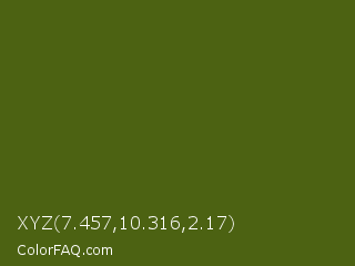XYZ 7.457,10.316,2.17 Color is a dark lime color and the nearest color is Saratoga #555b10. Hex code #4c6212 and RGB value is rgb(76,98,18). In RGB color space, this color is composed of 30% red, 38% green, 7% blue, In CMYK color space, this color is composed of 22% cyan, 0% magenta, 82% yellow , 62% black , In HSL color space, this color has a hue angle of 77° , 69% saturation and 23% lightness.