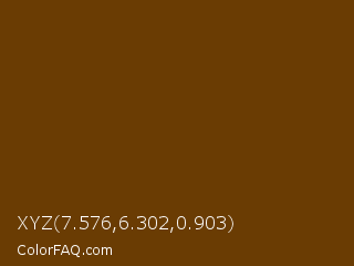XYZ 7.576,6.302,0.903 Color is a very dark orange color and the nearest color is Nutmeg Wood Finish #683600. Hex code #6a3c03 and RGB value is rgb(106,60,3). In RGB color space, this color is composed of 42% red, 24% green, 1% blue, In CMYK color space, this color is composed of 0% cyan, 43% magenta, 97% yellow , 58% black , In HSL color space, this color has a hue angle of 33° , 94% saturation and 21% lightness.