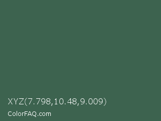 XYZ 7.798,10.48,9.009 Color is a normal green color and the nearest color is Mineral Green #3f5d53. Hex code #3d634f and RGB value is rgb(61,99,79). In RGB color space, this color is composed of 24% red, 39% green, 31% blue, In CMYK color space, this color is composed of 38% cyan, 0% magenta, 20% yellow , 61% black , In HSL color space, this color has a hue angle of 148° , 24% saturation and 31% lightness.