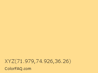 XYZ 71.979,74.926,36.26 Color is a light orange color and the nearest color is Salomie #fedb8d. Hex code #ffdd8e and RGB value is rgb(255,221,142). In RGB color space, this color is composed of 100% red, 87% green, 56% blue, In CMYK color space, this color is composed of 0% cyan, 13% magenta, 44% yellow , 0% black , In HSL color space, this color has a hue angle of 42° , 100% saturation and 78% lightness.