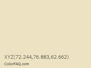 XYZ 72.244,76.883,62.662 Color is a very light yellow color and the nearest color is Pearl #eae0c8. Hex code #ede3c3 and RGB value is rgb(237,227,195). In RGB color space, this color is composed of 93% red, 89% green, 76% blue, In CMYK color space, this color is composed of 0% cyan, 4% magenta, 18% yellow , 7% black , In HSL color space, this color has a hue angle of 46° , 54% saturation and 85% lightness.