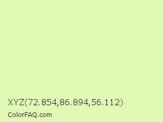 XYZ 72.854,86.894,56.112 Color is a very light green color and the nearest color is Caper #dcedb4. Hex code #e0f9b4 and RGB value is rgb(224,249,180). In RGB color space, this color is composed of 88% red, 98% green, 71% blue, In CMYK color space, this color is composed of 10% cyan, 0% magenta, 28% yellow , 2% black , In HSL color space, this color has a hue angle of 82° , 85% saturation and 84% lightness.
