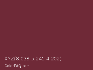 XYZ 8.038,5.241,4.202 Color is a dark red color and the nearest color is Wine #722f37. Hex code #6f2937 and RGB value is rgb(111,41,55). In RGB color space, this color is composed of 44% red, 16% green, 22% blue, In CMYK color space, this color is composed of 0% cyan, 63% magenta, 50% yellow , 56% black , In HSL color space, this color has a hue angle of 348° , 46% saturation and 30% lightness.