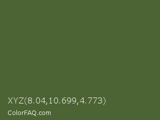 XYZ 8.04,10.699,4.773 Color is a dark green color and the nearest color is Dark Olive Green #556b2f. Hex code #4c6333 and RGB value is rgb(76,99,51). In RGB color space, this color is composed of 30% red, 39% green, 20% blue, In CMYK color space, this color is composed of 23% cyan, 0% magenta, 48% yellow , 61% black , In HSL color space, this color has a hue angle of 89° , 32% saturation and 29% lightness.