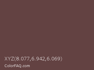 XYZ 8.077,6.942,6.069 Color is a normal red color and the nearest color is Rose Ebony #674846. Hex code #634242 and RGB value is rgb(99,66,66). In RGB color space, this color is composed of 39% red, 26% green, 26% blue, In CMYK color space, this color is composed of 0% cyan, 33% magenta, 33% yellow , 61% black , In HSL color space, this color has a hue angle of 0° , 20% saturation and 32% lightness.