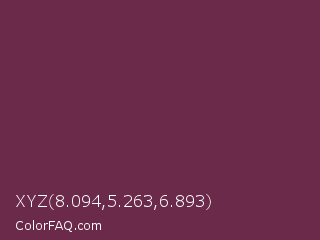 XYZ 8.094,5.263,6.893 Color is a dark rose color and the nearest color is Tawny Port #692545. Hex code #6b2a49 and RGB value is rgb(107,42,73). In RGB color space, this color is composed of 42% red, 16% green, 29% blue, In CMYK color space, this color is composed of 0% cyan, 61% magenta, 32% yellow , 58% black , In HSL color space, this color has a hue angle of 331° , 44% saturation and 29% lightness.