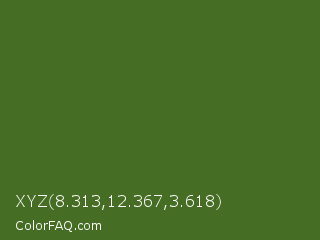 XYZ 8.313,12.367,3.618 Color is a dark green color and the nearest color is Dark Moss Green #4a5d23. Hex code #466d24 and RGB value is rgb(70,109,36). In RGB color space, this color is composed of 27% red, 43% green, 14% blue, In CMYK color space, this color is composed of 36% cyan, 0% magenta, 67% yellow , 57% black , In HSL color space, this color has a hue angle of 92° , 50% saturation and 28% lightness.