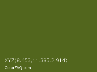XYZ 8.453,11.385,2.914 Color is a dark lime color and the nearest color is Dark Moss Green #4a5d23. Hex code #52661d and RGB value is rgb(82,102,29). In RGB color space, this color is composed of 32% red, 40% green, 11% blue, In CMYK color space, this color is composed of 20% cyan, 0% magenta, 72% yellow , 60% black , In HSL color space, this color has a hue angle of 76° , 56% saturation and 26% lightness.