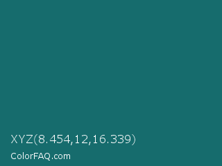 XYZ 8.454,12,16.339 Color is a dark cyan color and the nearest color is Genoa #15736b. Hex code #166c6d and RGB value is rgb(22,108,109). In RGB color space, this color is composed of 9% red, 42% green, 43% blue, In CMYK color space, this color is composed of 80% cyan, 1% magenta, 0% yellow , 57% black , In HSL color space, this color has a hue angle of 181° , 66% saturation and 26% lightness.