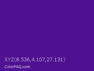 XYZ 8.536,4.107,27.131 Color is a normal violet color and the nearest color is Daisy Bush #4f2398. Hex code #4f1191 and RGB value is rgb(79,17,145). In RGB color space, this color is composed of 31% red, 7% green, 57% blue, In CMYK color space, this color is composed of 46% cyan, 88% magenta, 0% yellow , 43% black , In HSL color space, this color has a hue angle of 269° , 79% saturation and 32% lightness.