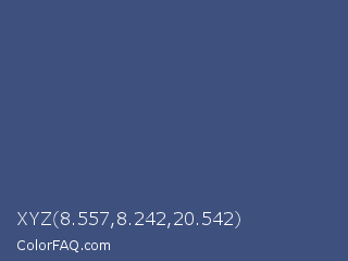 XYZ 8.557,8.242,20.542 Color is a normal blue color and the nearest color is East Bay #414c7d. Hex code #3e507d and RGB value is rgb(62,80,125). In RGB color space, this color is composed of 24% red, 31% green, 49% blue, In CMYK color space, this color is composed of 50% cyan, 36% magenta, 0% yellow , 51% black , In HSL color space, this color has a hue angle of 223° , 34% saturation and 37% lightness.