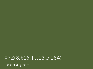 XYZ 8.616,11.13,5.184 Color is a dark green color and the nearest color is Dark Olive Green #556b2f. Hex code #516436 and RGB value is rgb(81,100,54). In RGB color space, this color is composed of 32% red, 39% green, 21% blue, In CMYK color space, this color is composed of 19% cyan, 0% magenta, 46% yellow , 61% black , In HSL color space, this color has a hue angle of 85° , 30% saturation and 30% lightness.